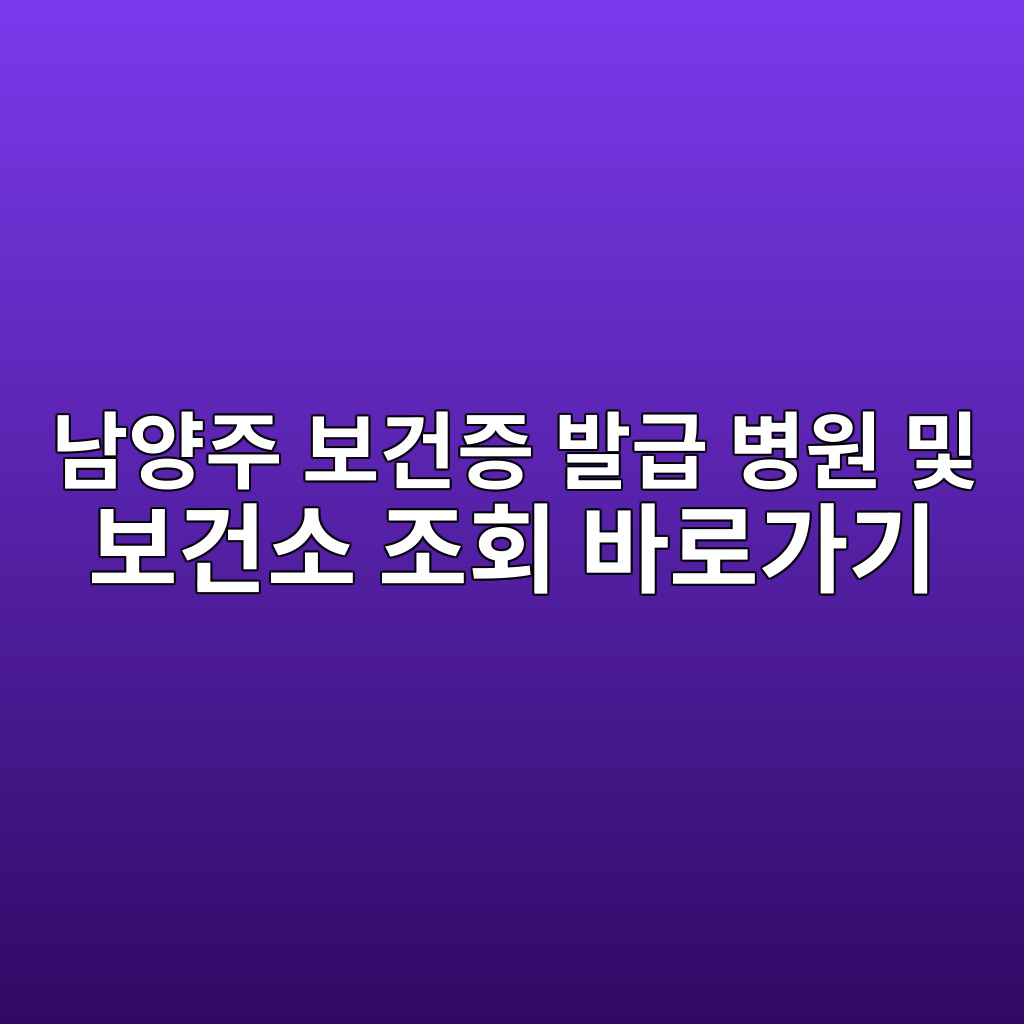 남양주 보건증 발급 병원 및 보건소 조회 종합 가이드