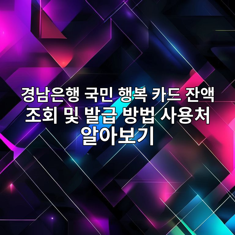 카드 발급부터 잔액 조회 방법, 다양한 혜택과 실질적인 사용처, 그리고 현명한 활용 팁까지, 경남은행 국민행복카드에 대한 궁금증을 한 번에 해결해 보세요.