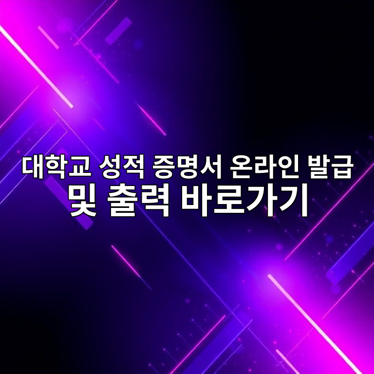 - 외부 대행 서비스 활용 일부 대학교는 ‘웹민원센터’, ‘한국통합민원센터’ 등 전문 증명서 발급 대행 서비스와 제휴하여 온라인 발급을 제공합니다. 이 경우 해당 대행 서비스 웹사이트에 접속하여 학교를 선택하고 발급 절차를 따릅니다.