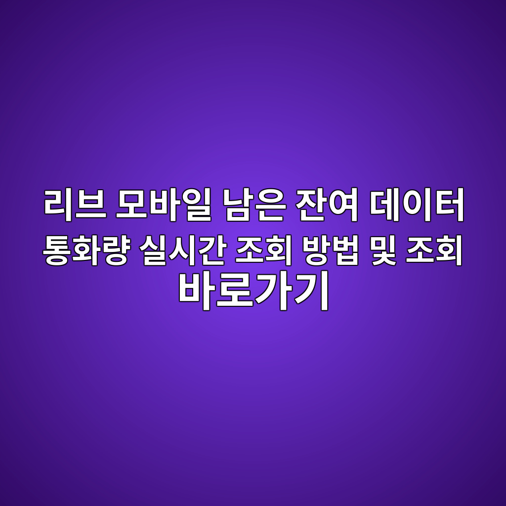 리브 모바일의 잔여 데이터 및 통화량 확인은 스마트한 모바일 생활을 위한 첫걸음입니다. 위에서 안내해드린 방법들을 통해 자신의 사용량을 꾸준히 확인하고 관리하여, 통신비 절약과 쾌적한 모바일 환경을 모두 누리시길 바랍니다.
