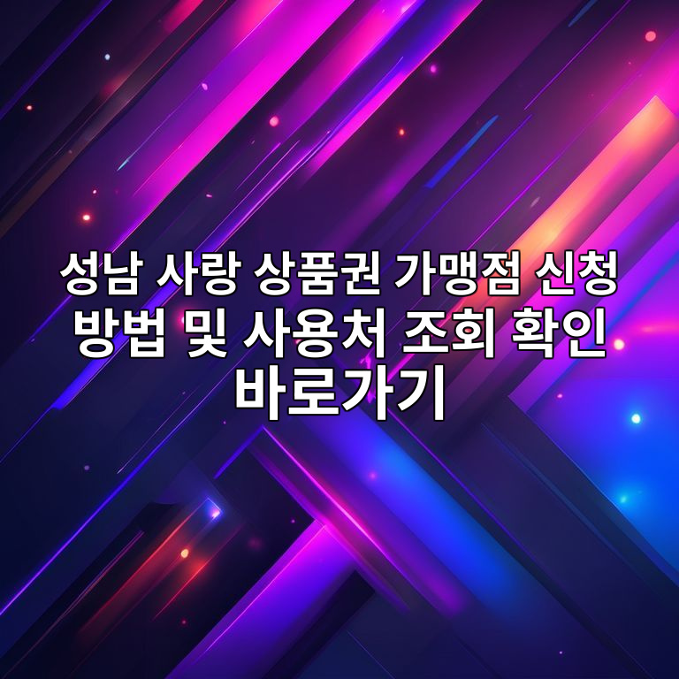 - 경기지역화폐 홈페이지 활용: 경기도 내 지역화폐를 총괄하는 경기지역화폐 홈페이지에서도 성남 사랑 상품권 가맹점을 조회할 수 있습니다.