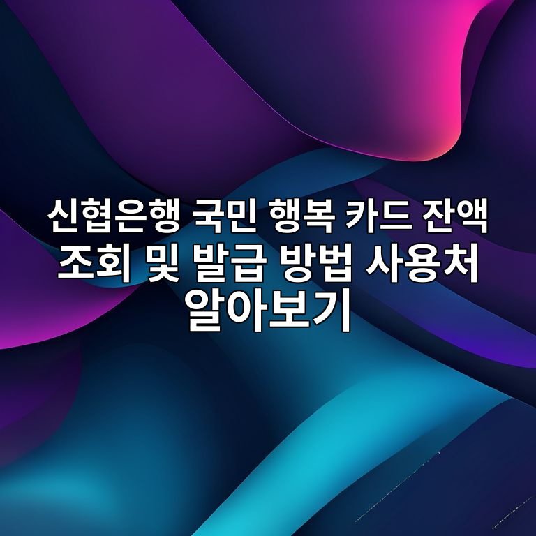 이 글에서는 신협은행 국민행복카드가 무엇인지부터 시작하여, 어떻게 발급받고, 잔액은 어떻게 조회하며, 어디서 사용할 수 있는지까지 모든 궁금증을 해소해 드릴 종합 가이드를 제공합니다. 지금부터 신협은행 국민행복카드를 100% 활용하는 방법을 함께 알아보겠습니다.