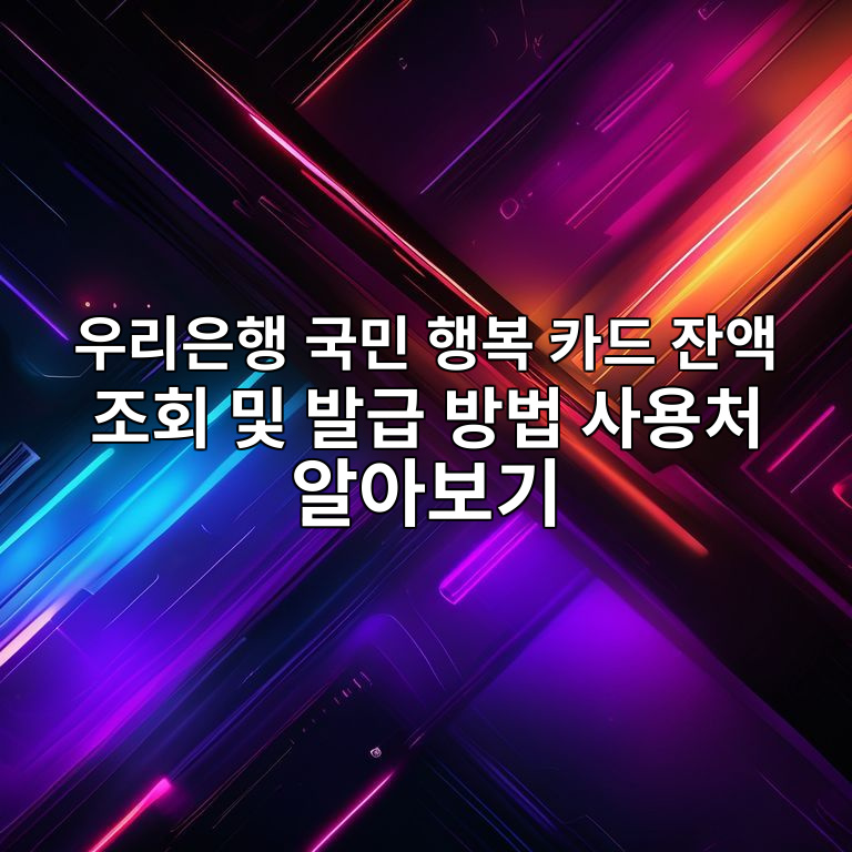 이 가이드는 우리은행 국민 행복 카드의 잔액 조회부터 발급 방법, 그리고 실생활에서 유용하게 활용하는 방법까지, 독자 여러분이 궁금해할 만한 모든 정보를 종합적으로 담고 있습니다. 현명하게 카드를 활용하여 소중한 아이와의 만남을 더욱 행복하게 준비하시길 바랍니다.