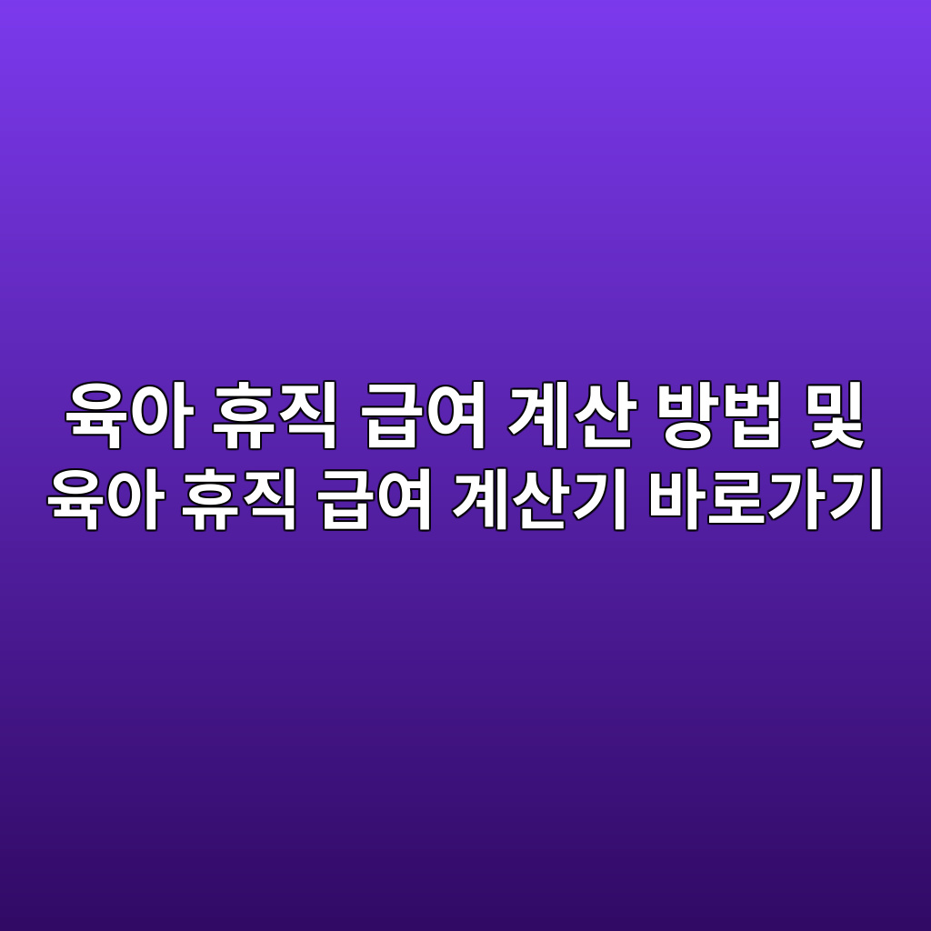 육아 휴직 급여 계산 방법과 육아 휴직 급여 계산기 활용 완벽 가이드