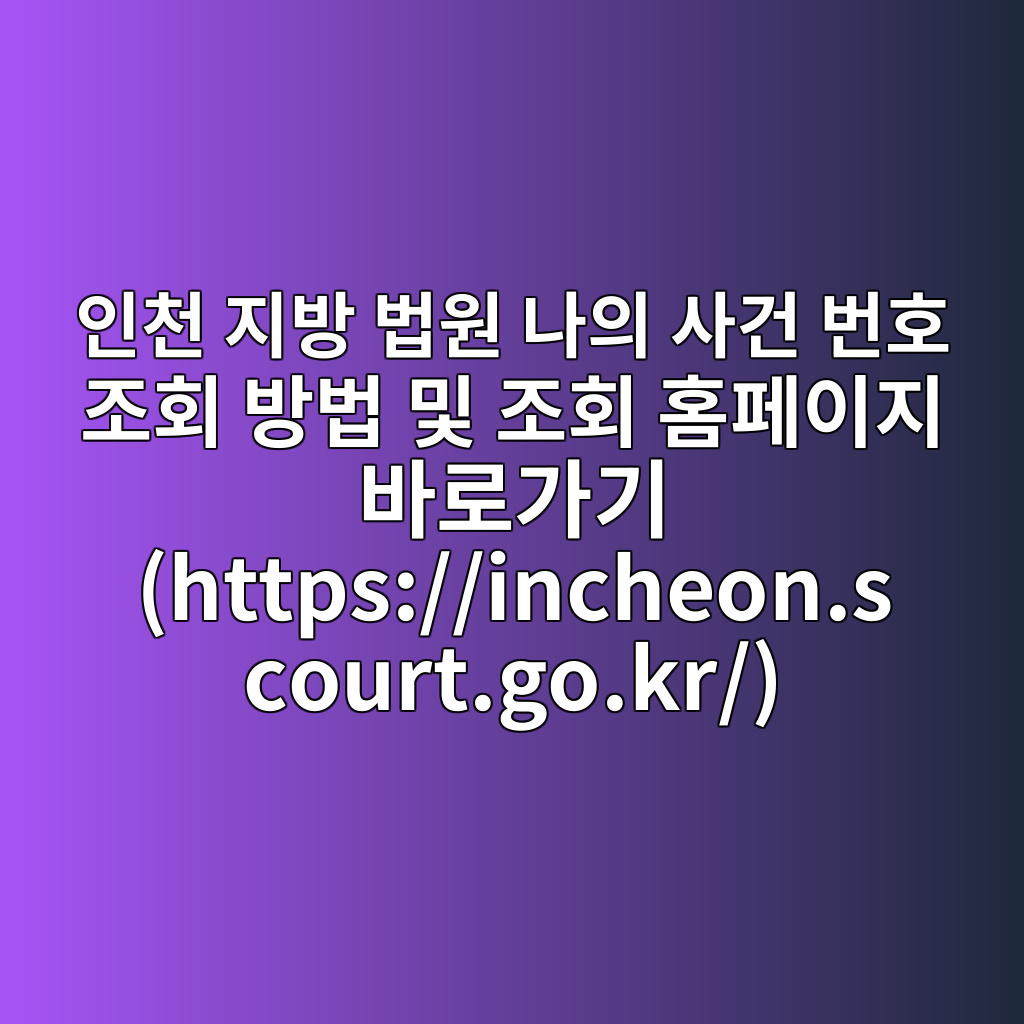 인천 지방 법원 홈페이지에서 나의 사건 번호를 조회하는 과정은 몇 가지 간단한 단계로 이루어집니다. 다음 안내에 따라 차근차근 진행해 보세요.
