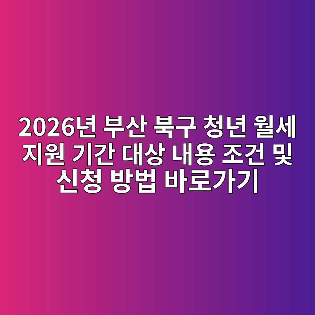 2026년 부산 북구 청년 월세 지원 사업 종합 가이드