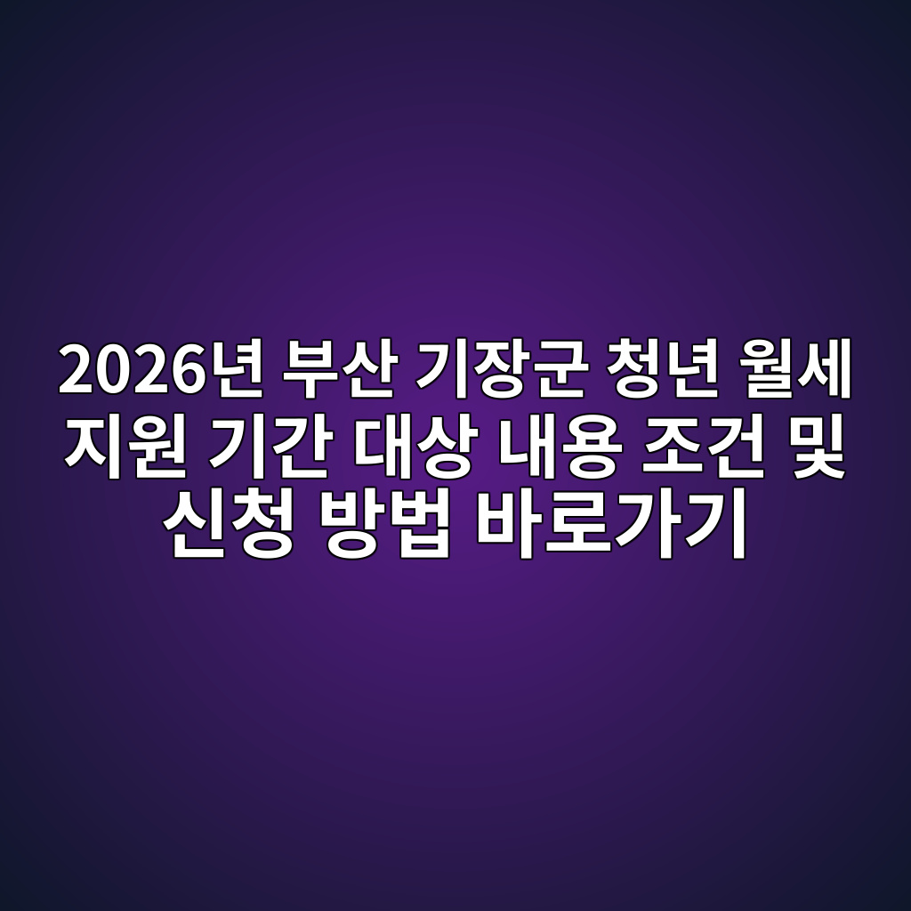 2026년 부산 기장군 청년 월세 지원 기간 대상 내용 조건 및 신청 방법 바로가기