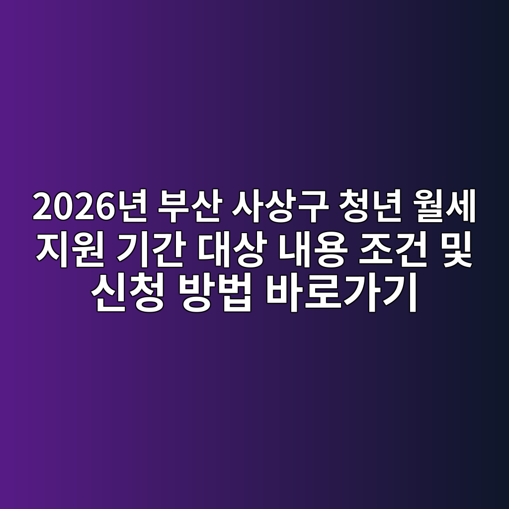 2026년 부산 사상구 청년 월세 지원 기간 대상 내용 조건 및 신청 방법 바로가기