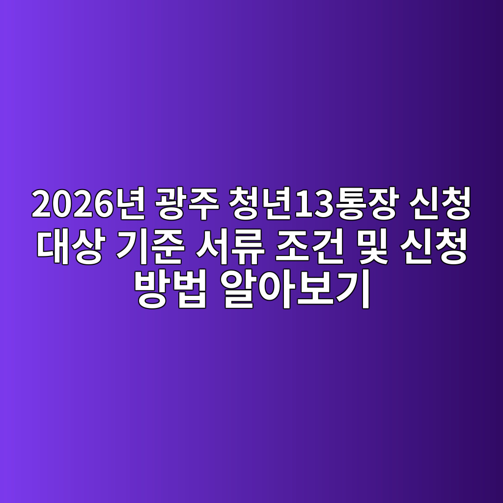 2026년 광주 청년13통장 신청 대상 기준 서류 조건 및 신청 방법 알아보기
