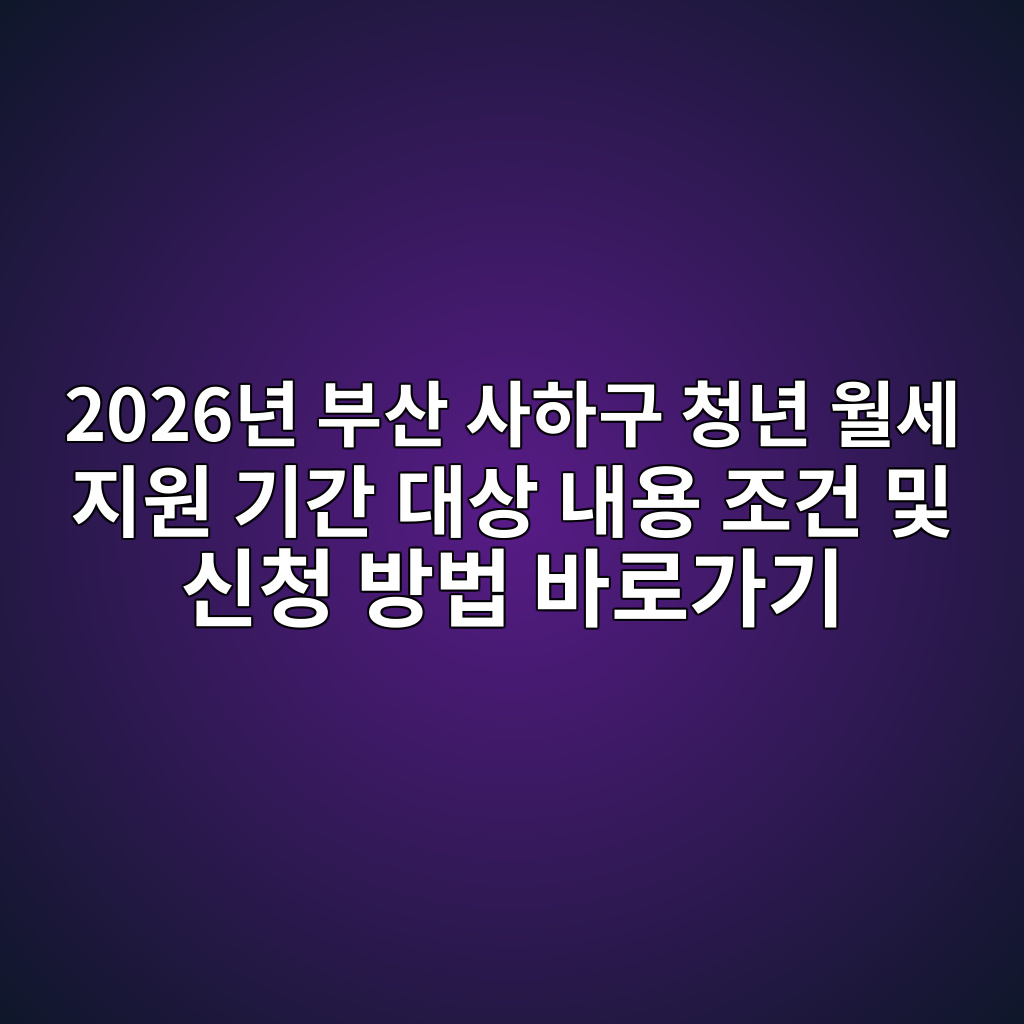 2026년 부산 사하구 청년 월세 지원 기간 대상 내용 조건 및 신청 방법 바로가기