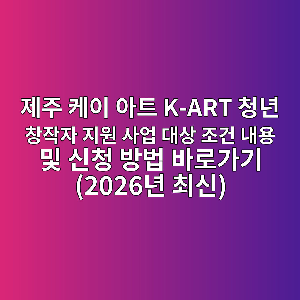 제주 케이 아트 K-ART 청년 창작자 지원 사업 대상 조건 내용 및 신청 방법 바로가기 (2026년 최신)