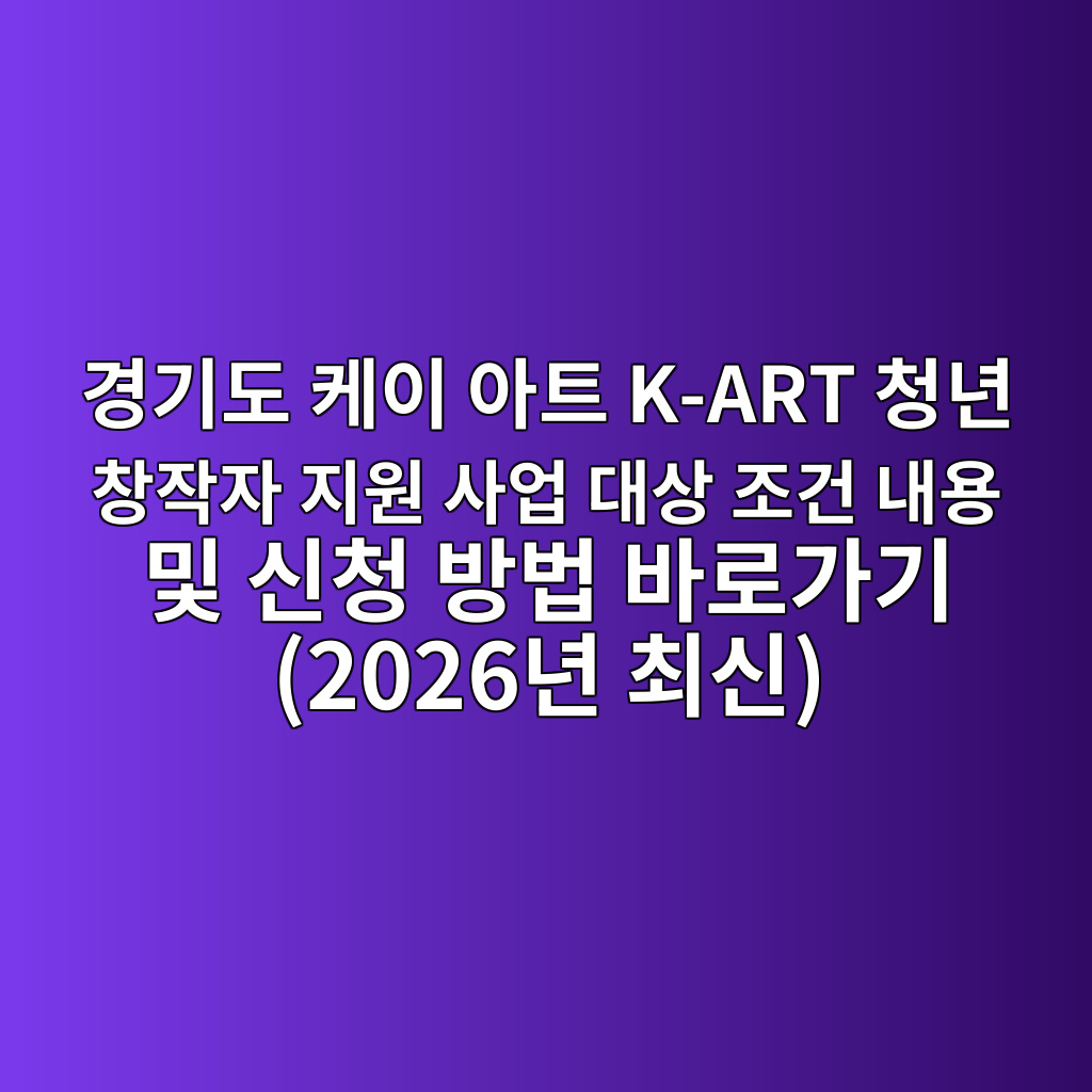 경기도 케이 아트 K-ART 청년 창작자 지원 사업 대상 조건 내용 및 신청 방법 바로가기 (2026년 최신)