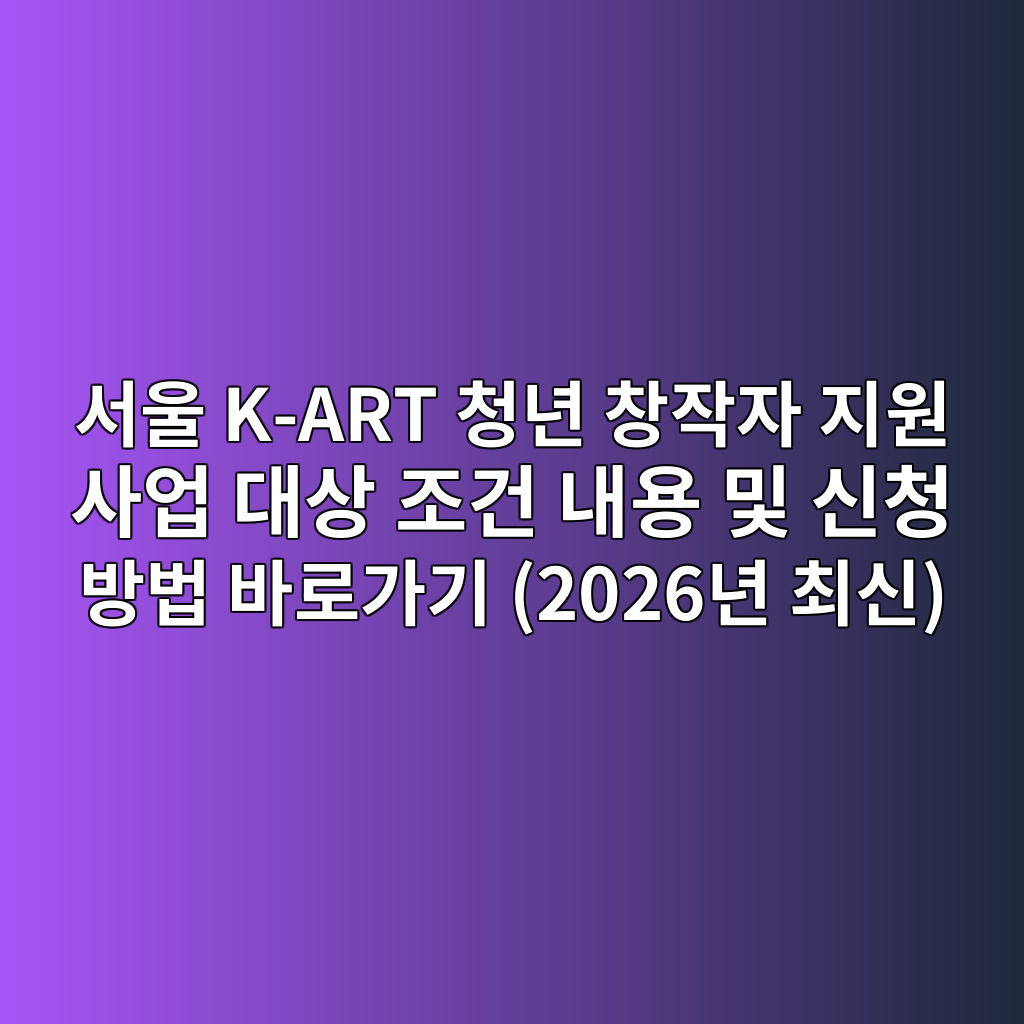 서울 K-ART 청년 창작자 지원 사업 대상 조건 내용 및 신청 방법 바로가기 (2026년 최신)