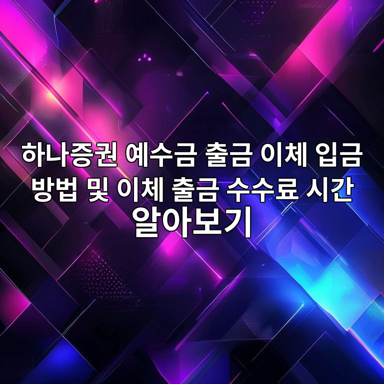 하나증권 예수금 출금 이체 입금 방법 및 이체 출금 수수료 시간 알아보기